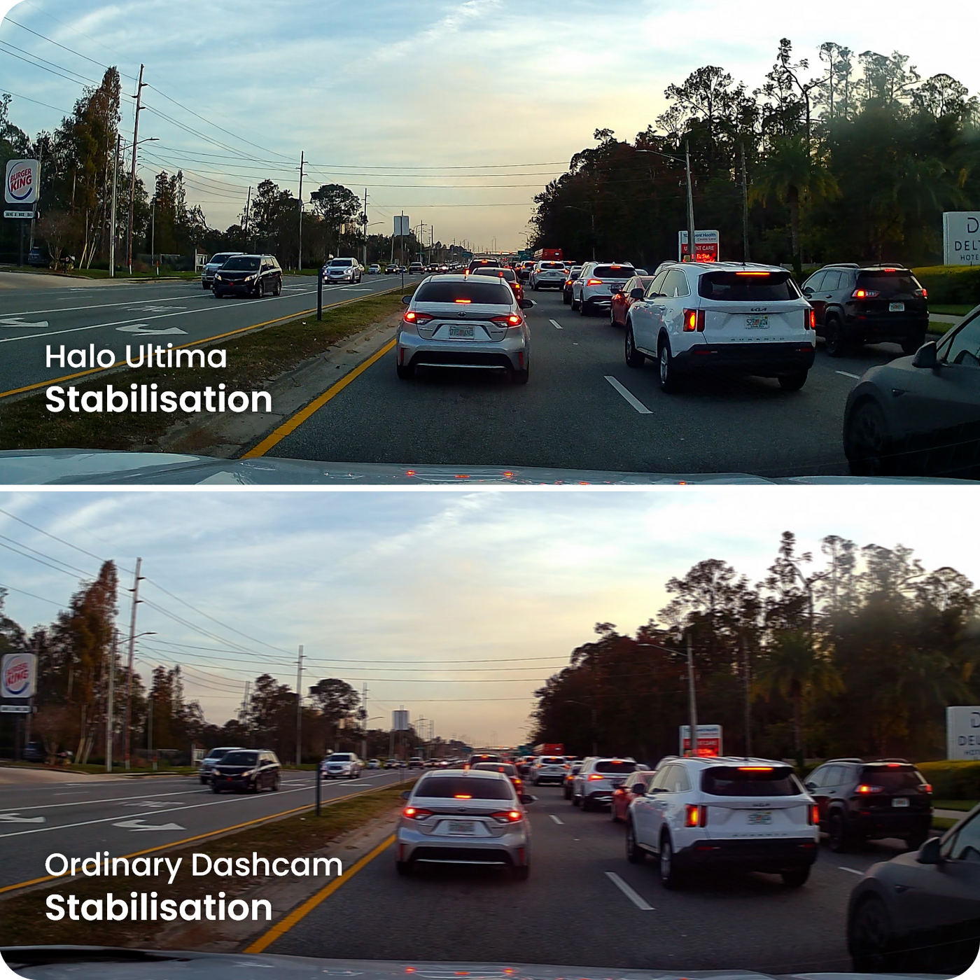 By automatically reducing blurring and enhancing exposure, this feature delivers higher-quality footage, ensuring a sharper, more detailed view of your journeys. With the Road Angel Halo, clarity is always in focus.